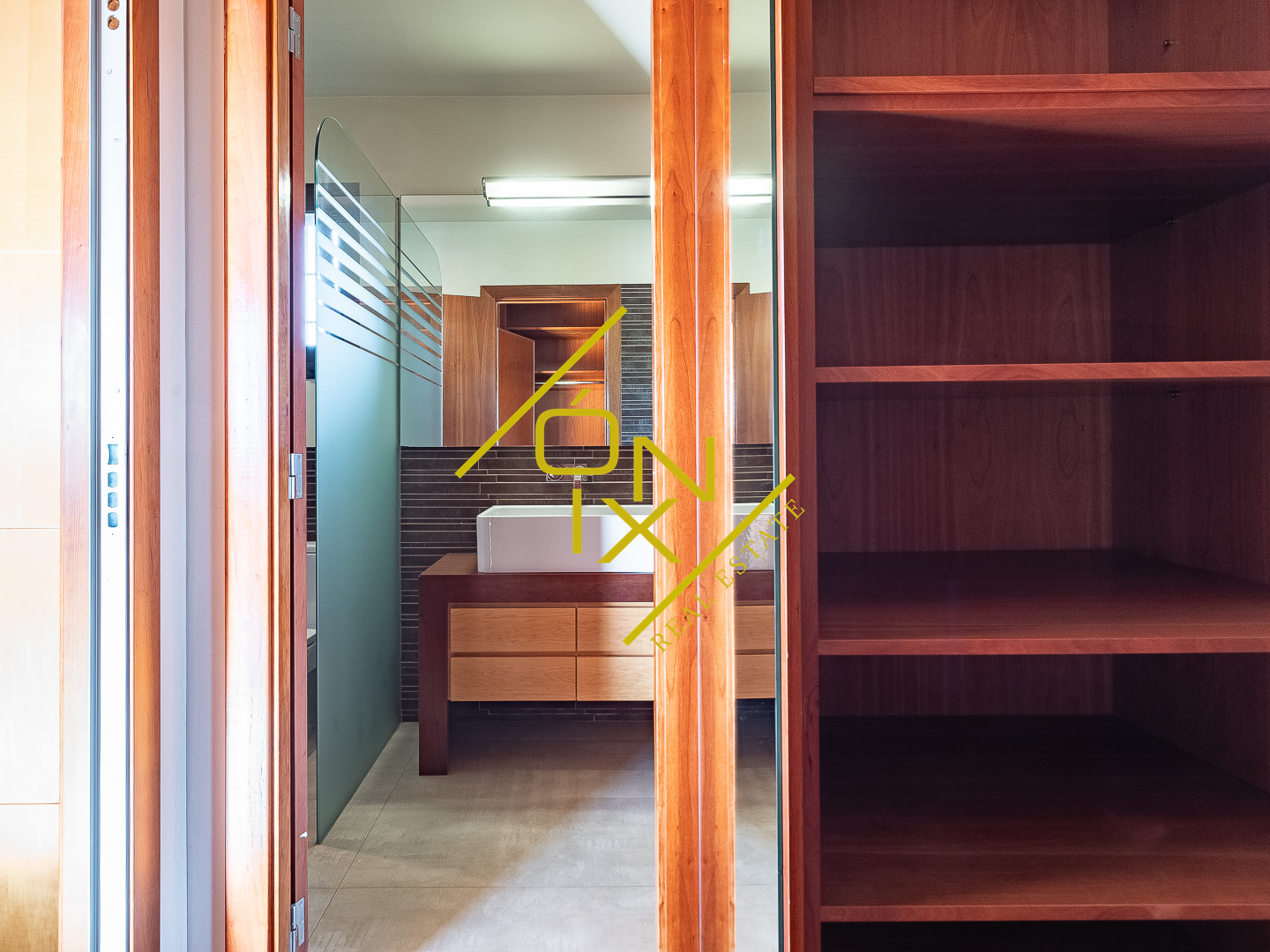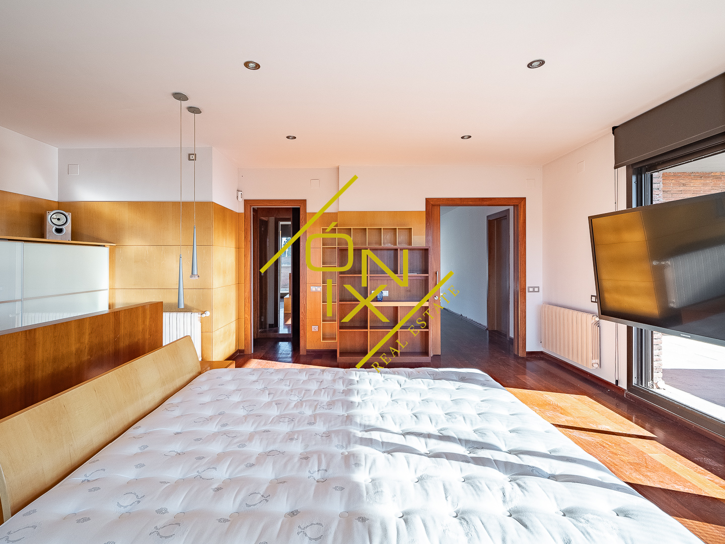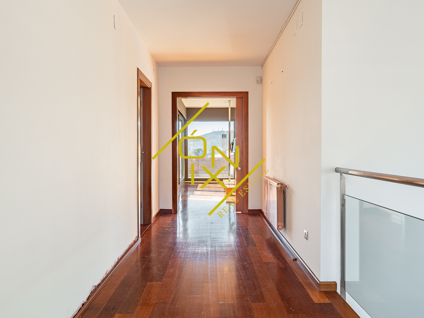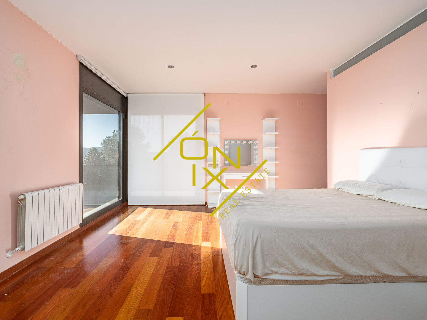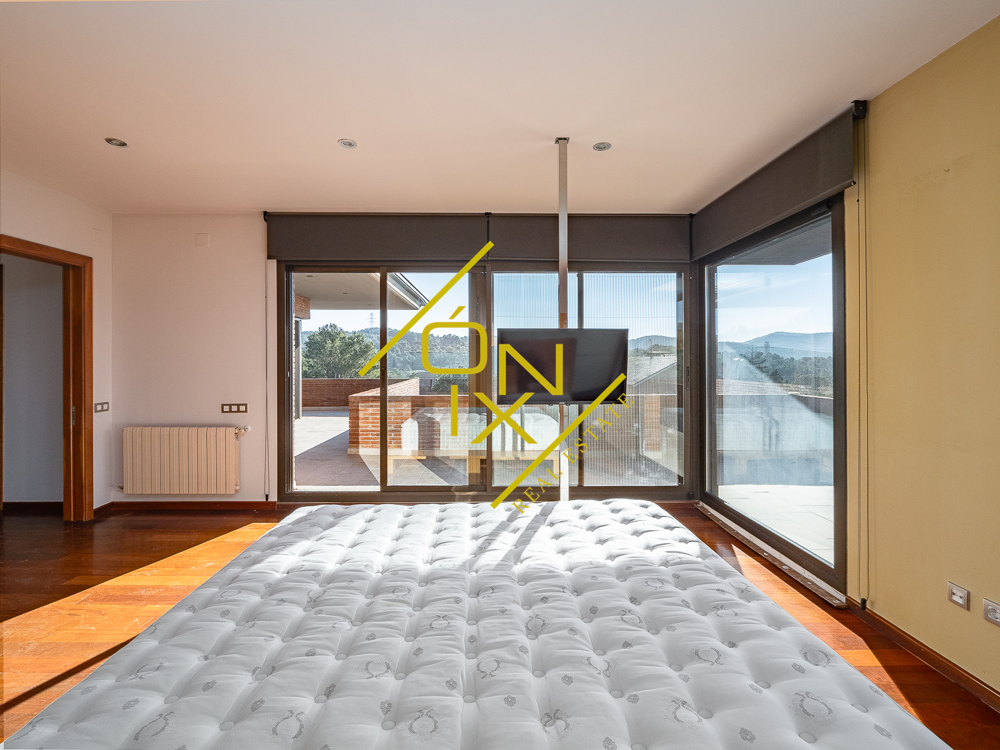 La planta superior es un verdadero refugio privado. Una suite principal de generosas dimensiones ofrece un vestidor, baño completo y vistas panorámicas a la montaña. Además, dispone de otra habitación doble, un segundo vestidor y un gran baño completo, esta segunda habitación antes estaba distribuida en dos habitaciones, con lo cual, la planta superior disponía de tres habitaciones y dos baños. Desde esta planta, se accede a una amplia terraza que rodea la vivienda, proporcionando un espacio inmejorable para relajarse al aire libre.