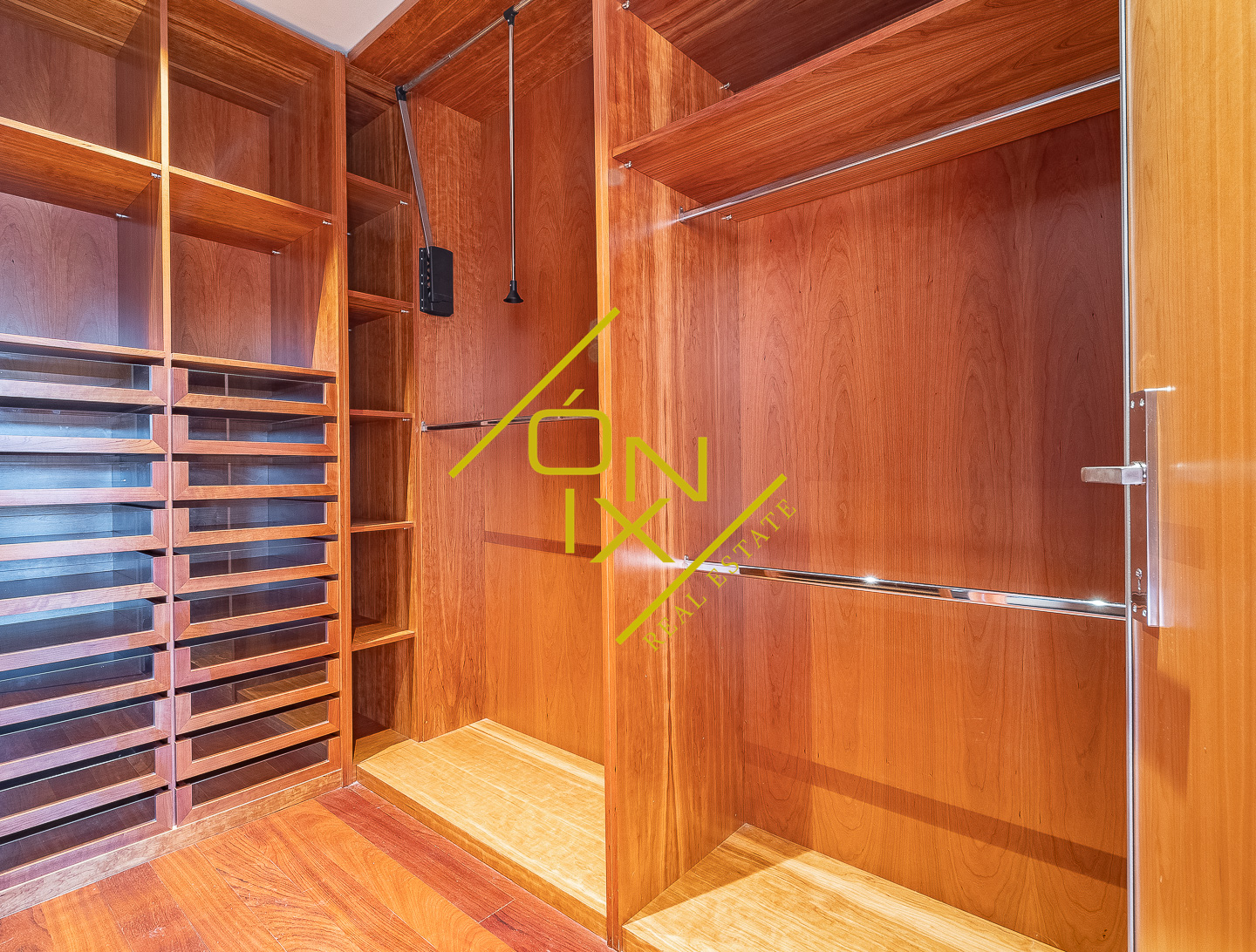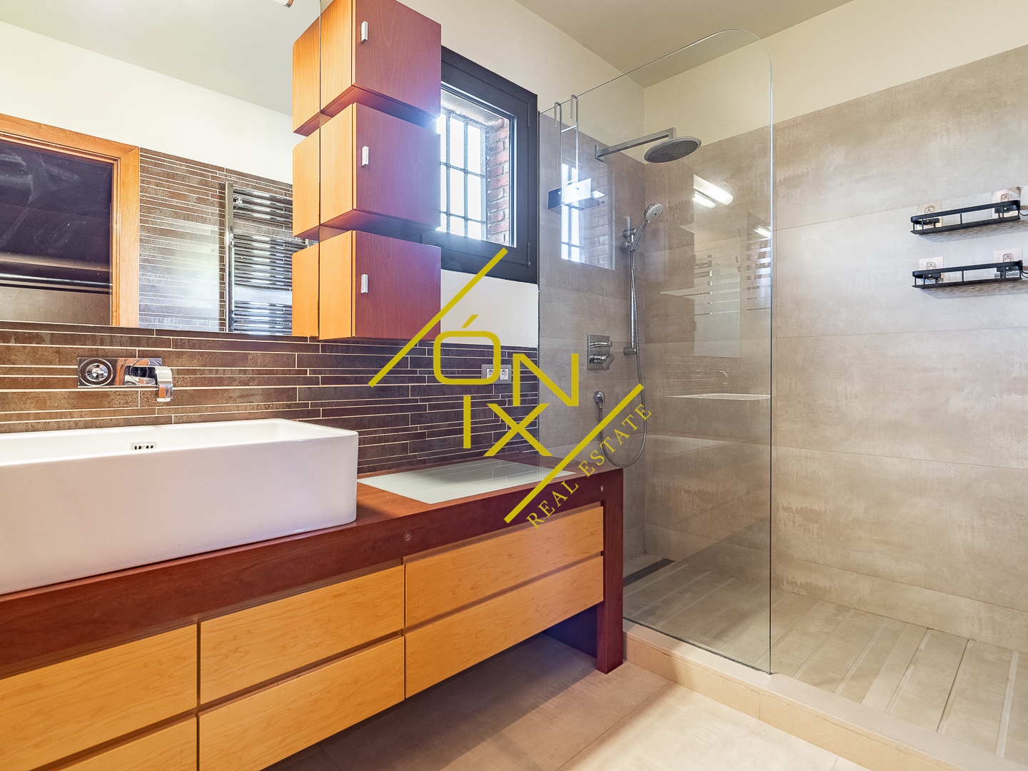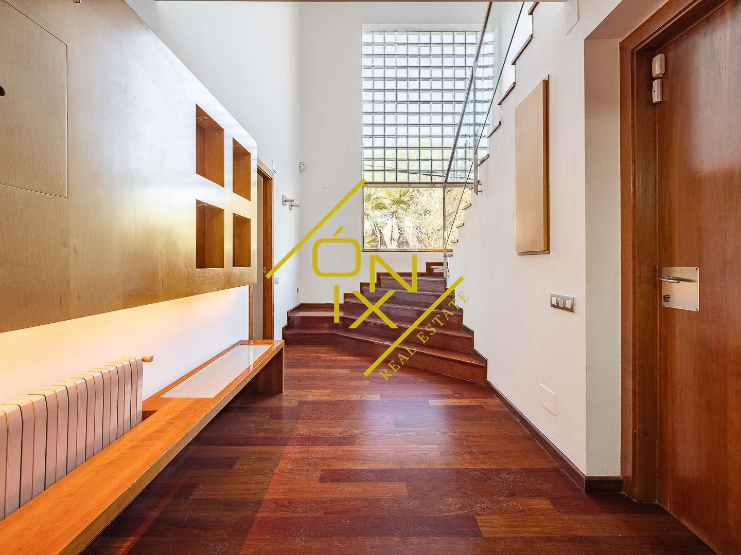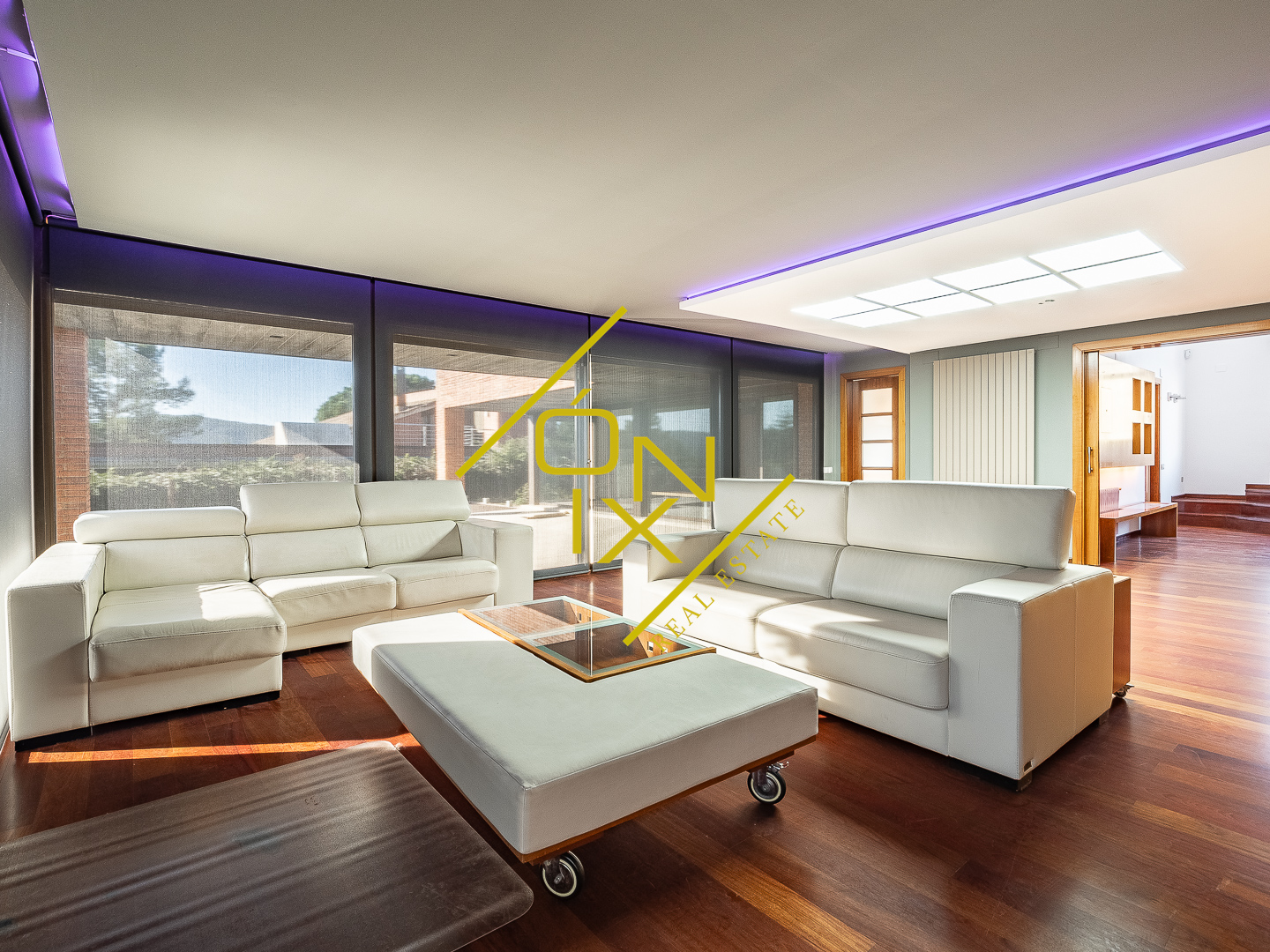 Esta majestuosa vivienda, consta de 413 m² distribuidos en dos plantas, sobre una parcela de 1.054 m², la vivienda impresiona desde el primer momento. En la planta principal, un elegante recibidor conduce a un espacioso salón con grandes ventanales, tanto las persianas como los estores son automáticos y conectan con el exterior. La cocina independiente con isla central y zona para comer, moderna y totalmente equipada, se sitúa junto al comedor y se abre también hacia el jardín, creando un espacio ideal para el entretenimiento. También en esta planta, encontrará tres habitaciones muy funcionales, un baño completo, una práctica zona de lavandería y un garaje con capacidad para tres vehículos, además de armarios empotrados y un cuarto de máquinas.