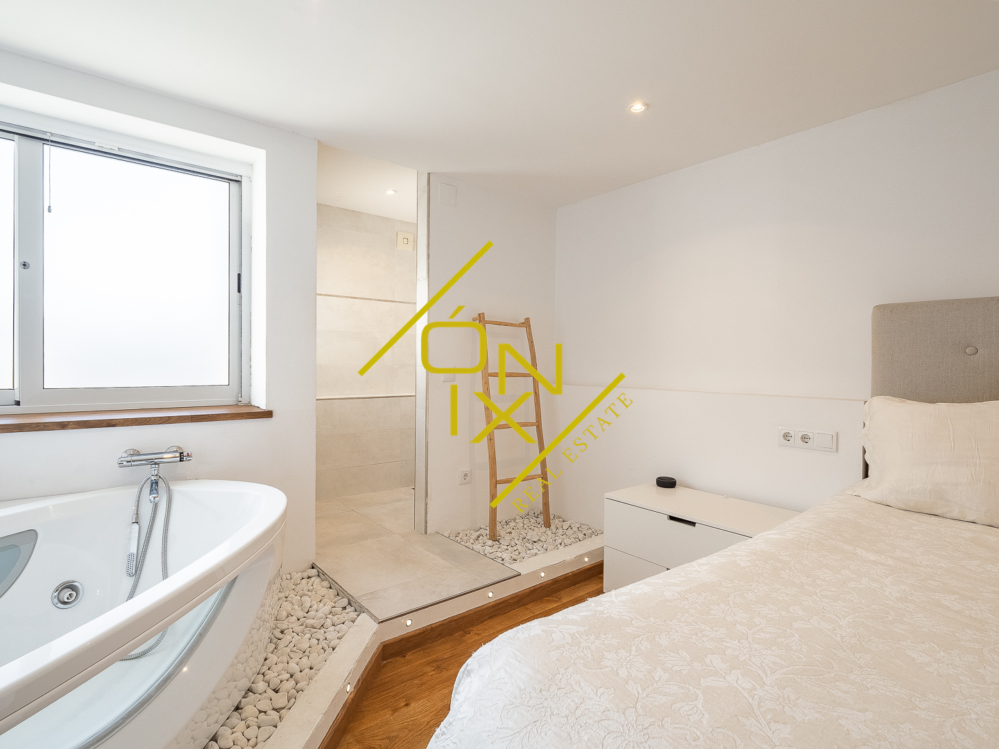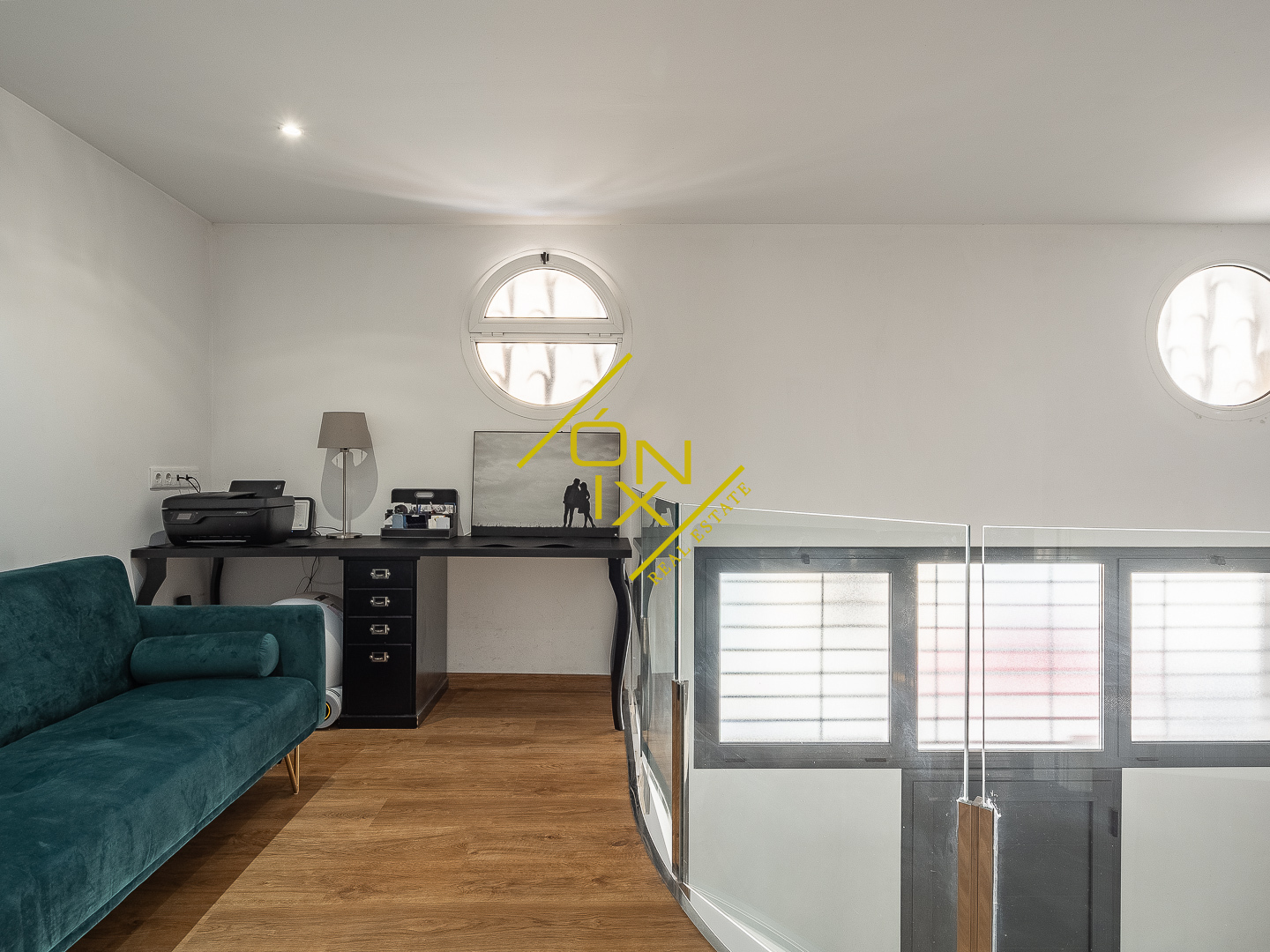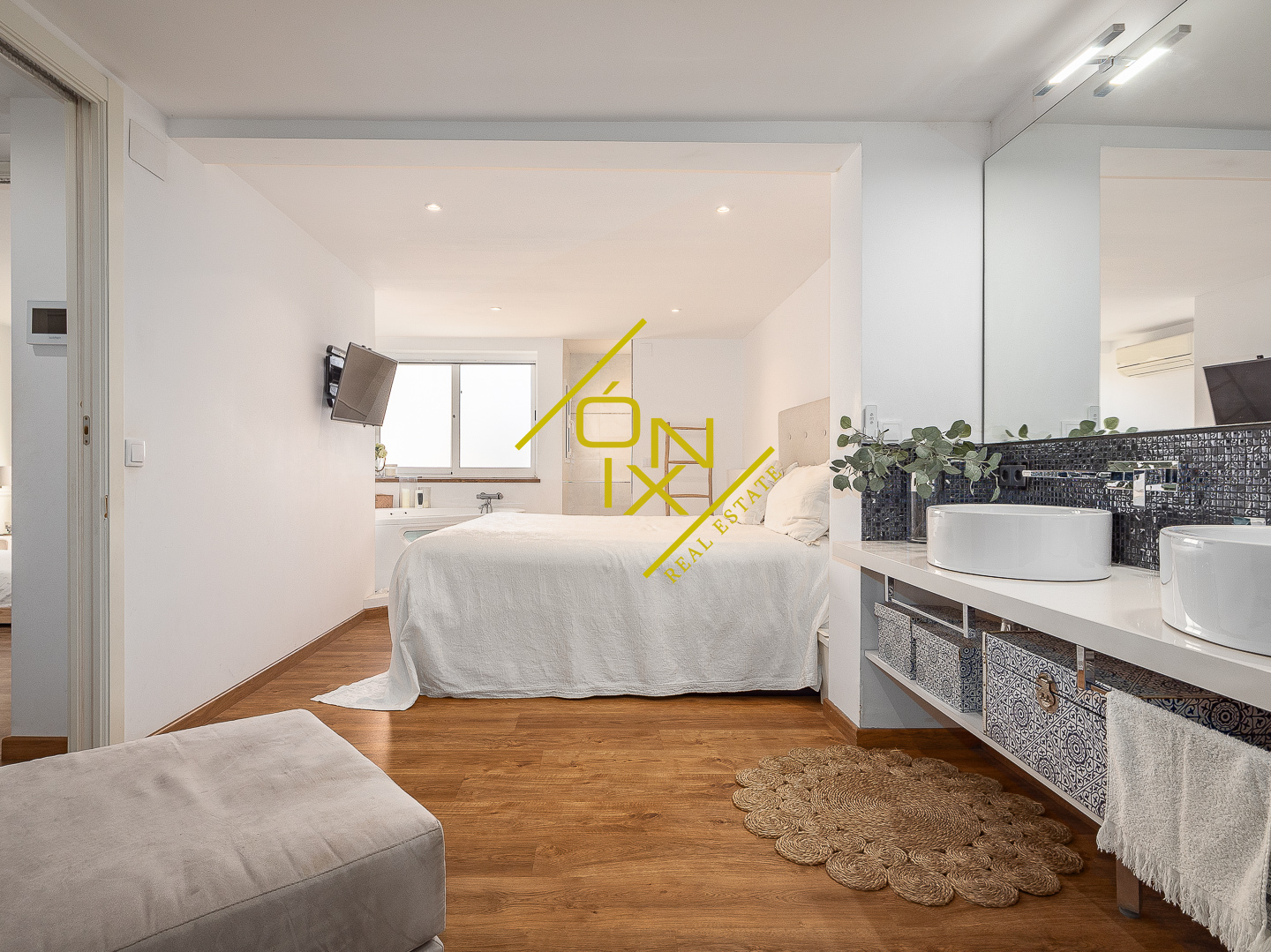 En la planta superior se distribuye la zona de noche, compuesta por tres dormitorios con personalidad propia. Destaca un dormitorio con pared de cristal que aporta carácter y luminosidad, otro dormitorio doble de generosas dimensiones, y un dormitorio principal en suite que se convierte en un auténtico refugio, con bañera de hidromasaje y un vestidor de ensueño. Esta planta se completa con un segundo baño completo y una zona polivalente, ideal como despacho o espacio multifuncional.