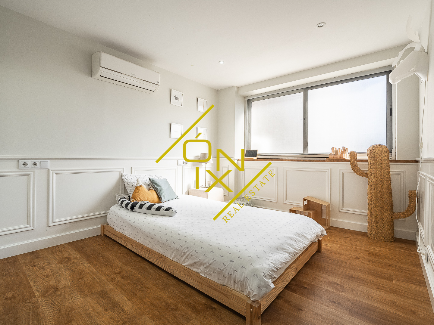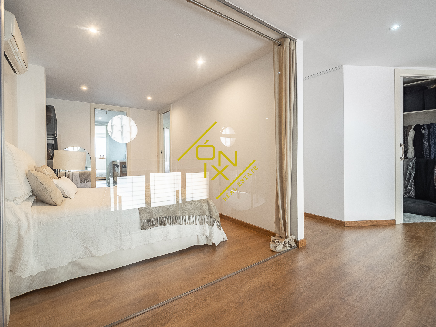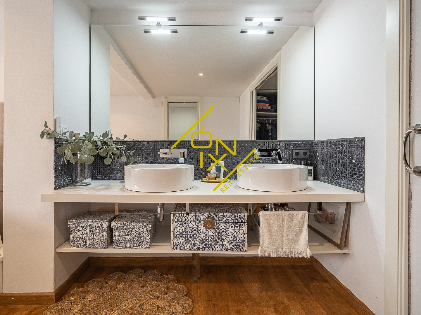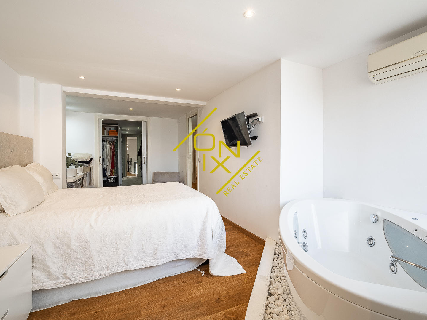 En la planta superior se distribuye la zona de noche, compuesta por tres dormitorios con personalidad propia. Destaca un dormitorio con pared de cristal que aporta carácter y luminosidad, otro dormitorio doble de generosas dimensiones, y un dormitorio principal en suite que se convierte en un auténtico refugio, con bañera de hidromasaje y un vestidor de ensueño. Esta planta se completa con un segundo baño completo y una zona polivalente, ideal como despacho o espacio multifuncional.