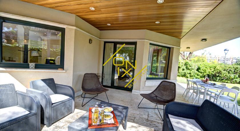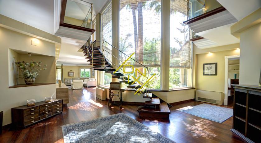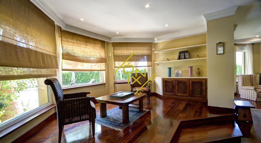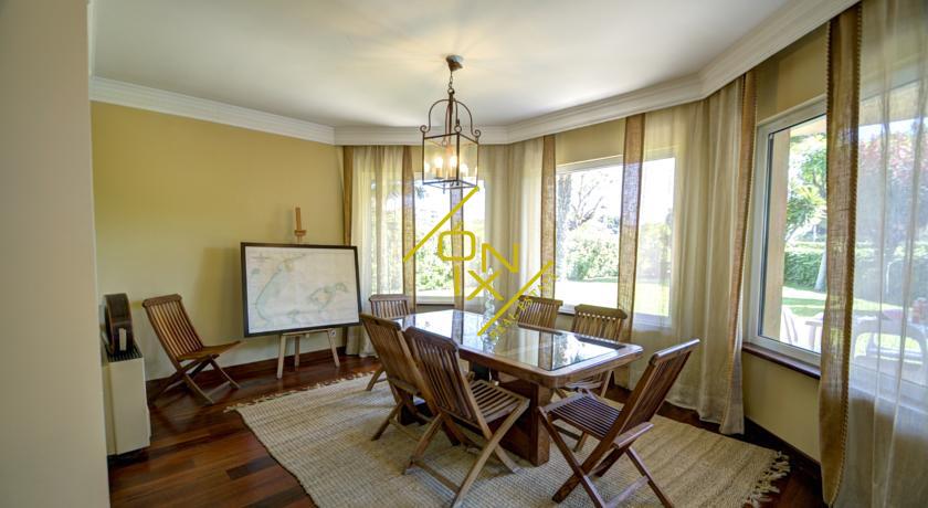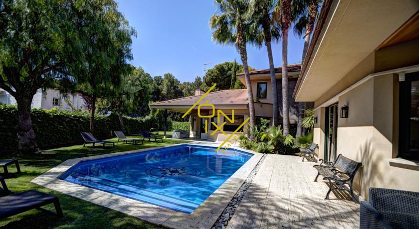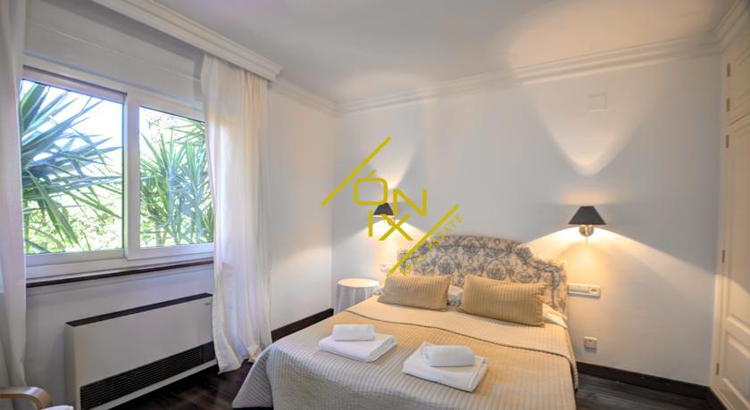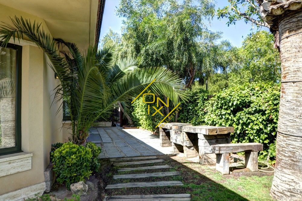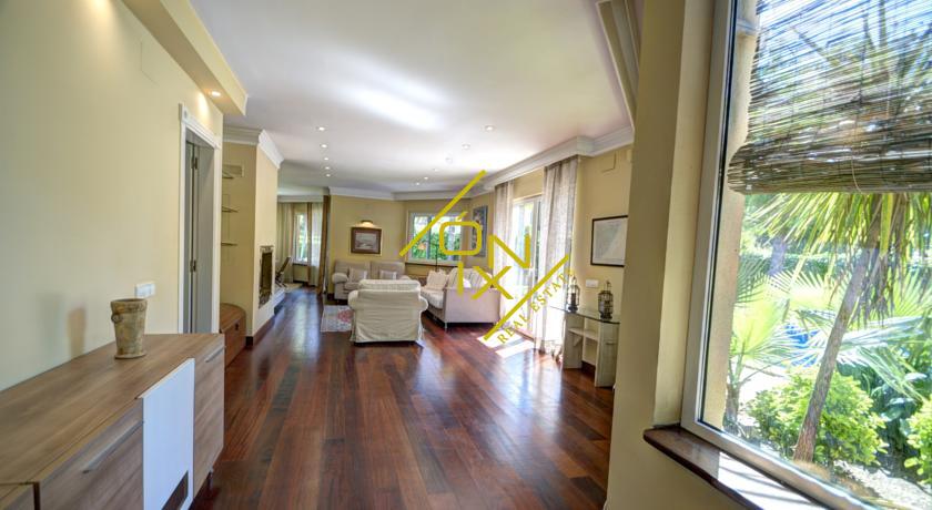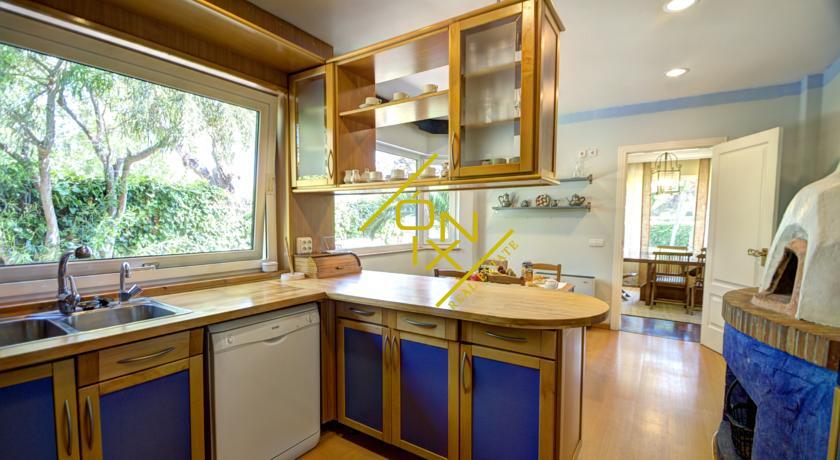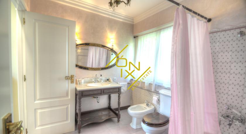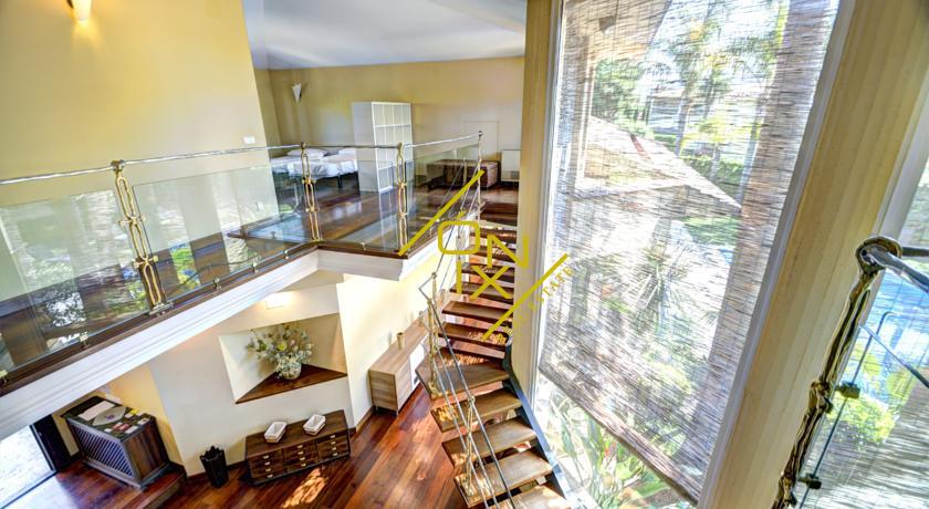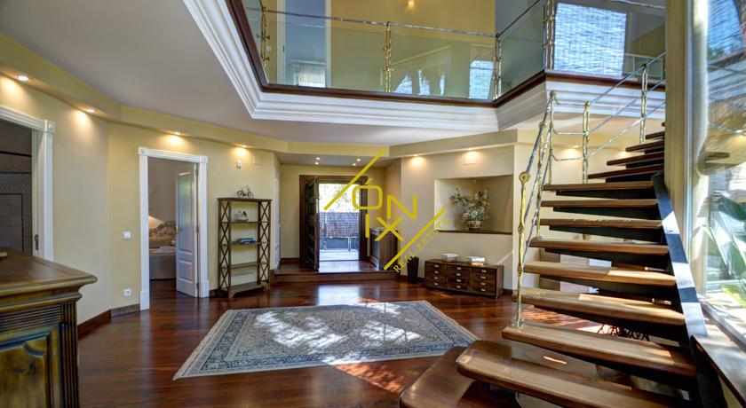 La carpintería exterior KOMMERLING, equipada con cristales climalit triples y mosquiteras, asegura un excelente aislamiento térmico y acústico, además de aportar seguridad y confort. En el interior, las puertas y armarios empotrados lacados, completamente vestidos y con altillos, destacan por su elegancia y funcionalidad. La distribución de esta vivienda es ideal, con cinco habitaciones amplias, incluyendo tres suites y una habitación de servicio con baño privado. La suite principal, ubicada en la planta baja, es un espacio excepcional de más de 70 m² que cuenta con chimenea, despacho, vestidor, baño con jacuzzi y acceso directo a un porche que conecta con el jardín.