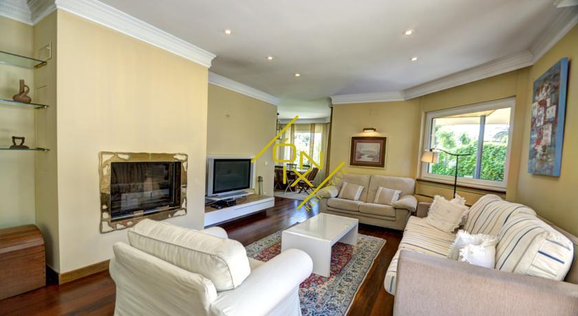El salón principal, con su chimenea equipada con casete de recuperación de calor, invita a disfrutar de momentos acogedores en cualquier época del año. Además, las instalaciones de última generación, como el sistema de aerotermia instalado en 2018, garantizan un confort térmico óptimo en todas las estancias gracias a los fancoils y termostatos individuales. Este enfoque en la eficiencia se complementa con una instalación fotovoltaica de 10 kW, compuesta por 24 paneles solares y batería virtual, que minimiza los costes energéticos, haciendo que el consumo sea comparable al de un piso convencional.