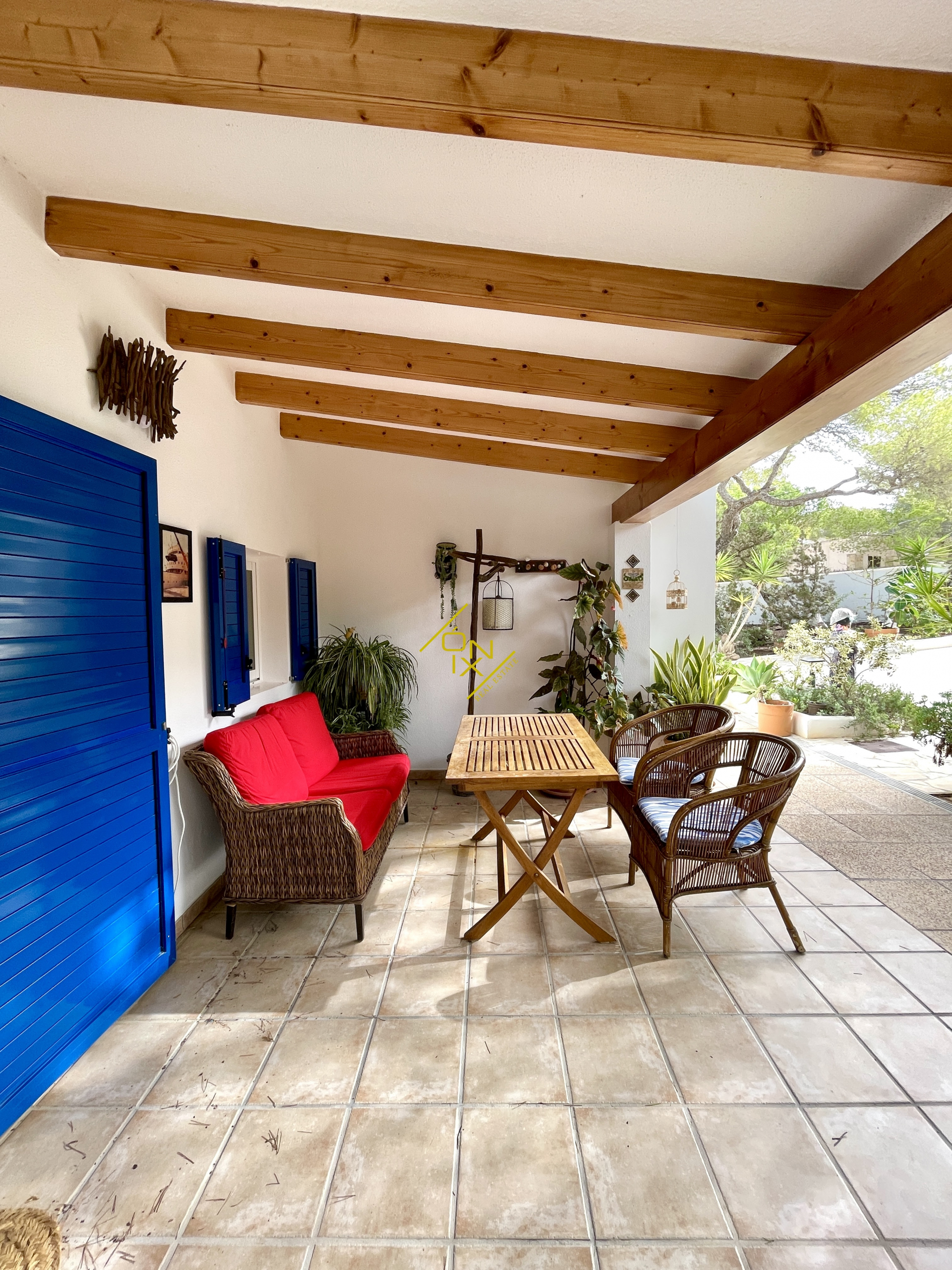 Uno de los grandes atractivos de esta propiedad es su precioso porche cubierto, un lugar mágico donde las largas noches de verano se convierten en momentos inolvidables bajo el cielo estrellado de Formentera. Ideal para cenas al aire libre, reuniones familiares o simplemente para dejarse llevar por la paz y la serenidad del entorno.