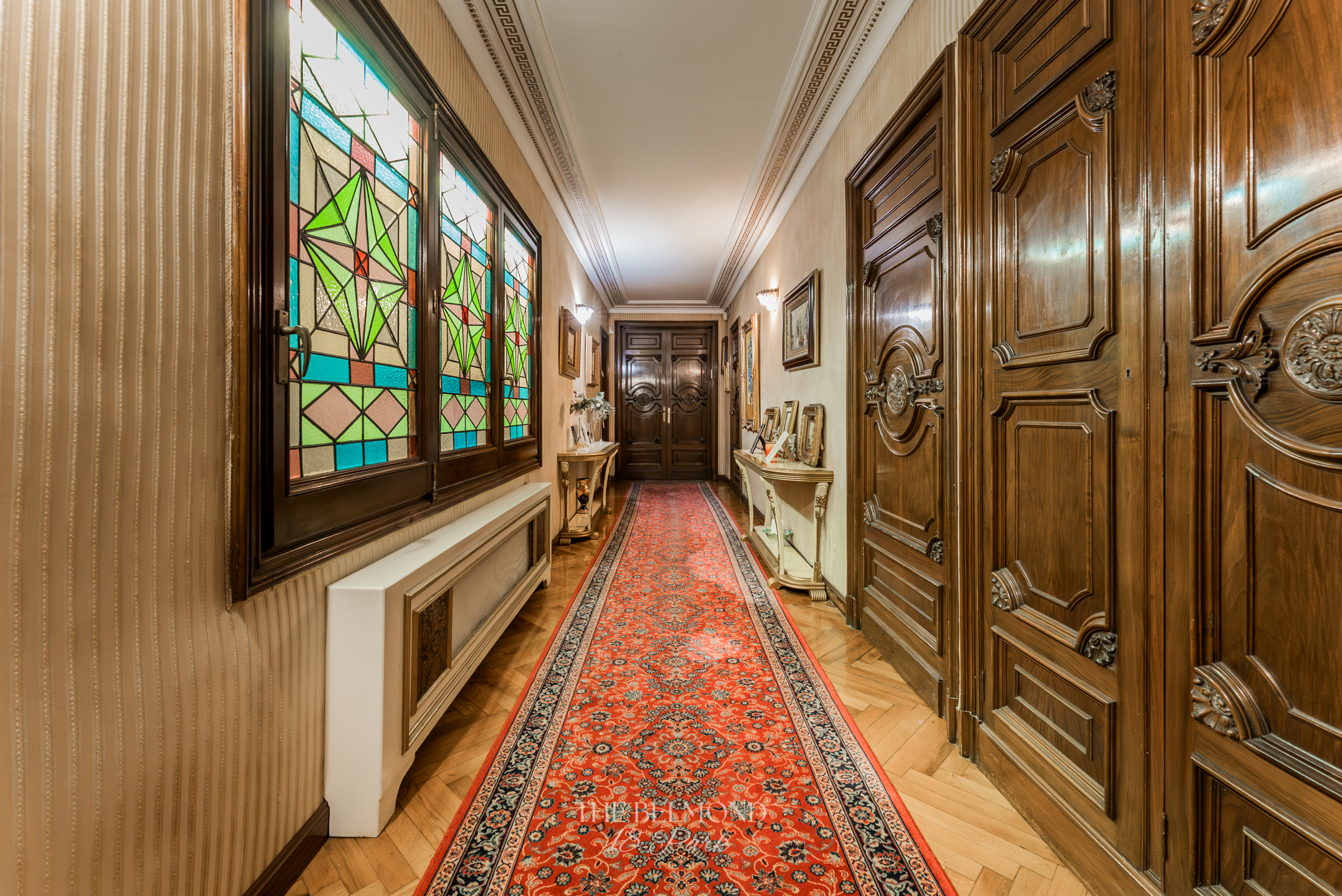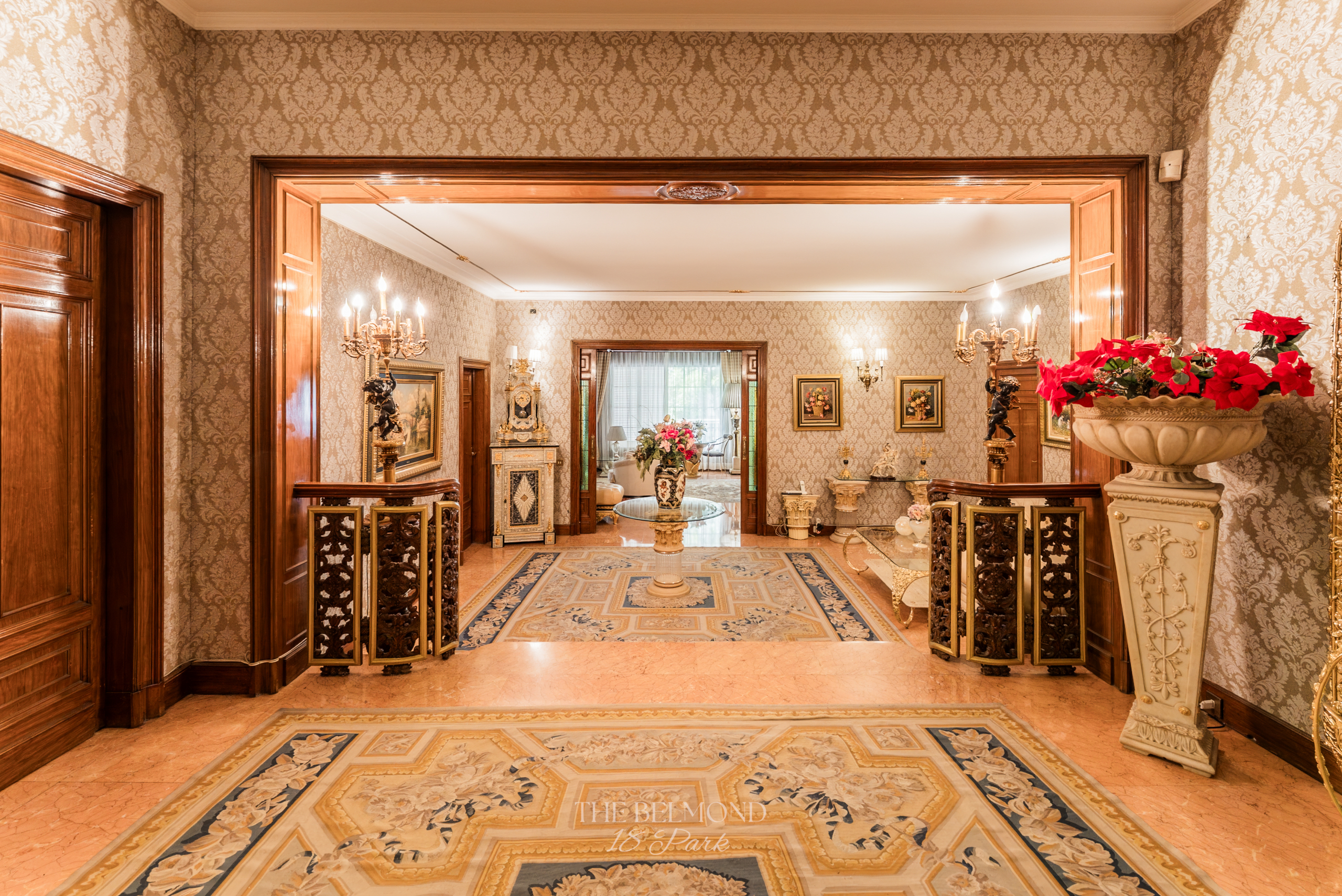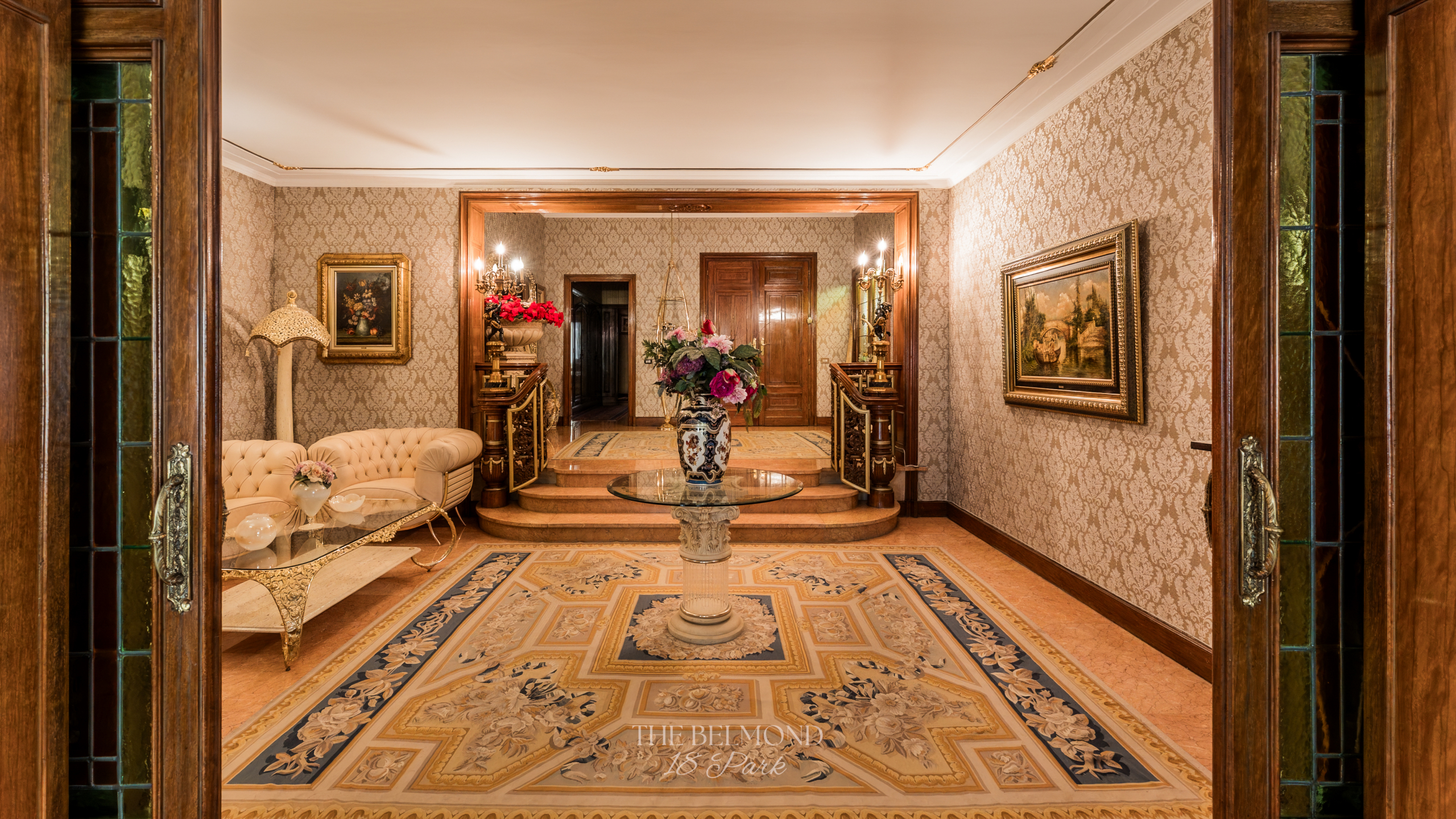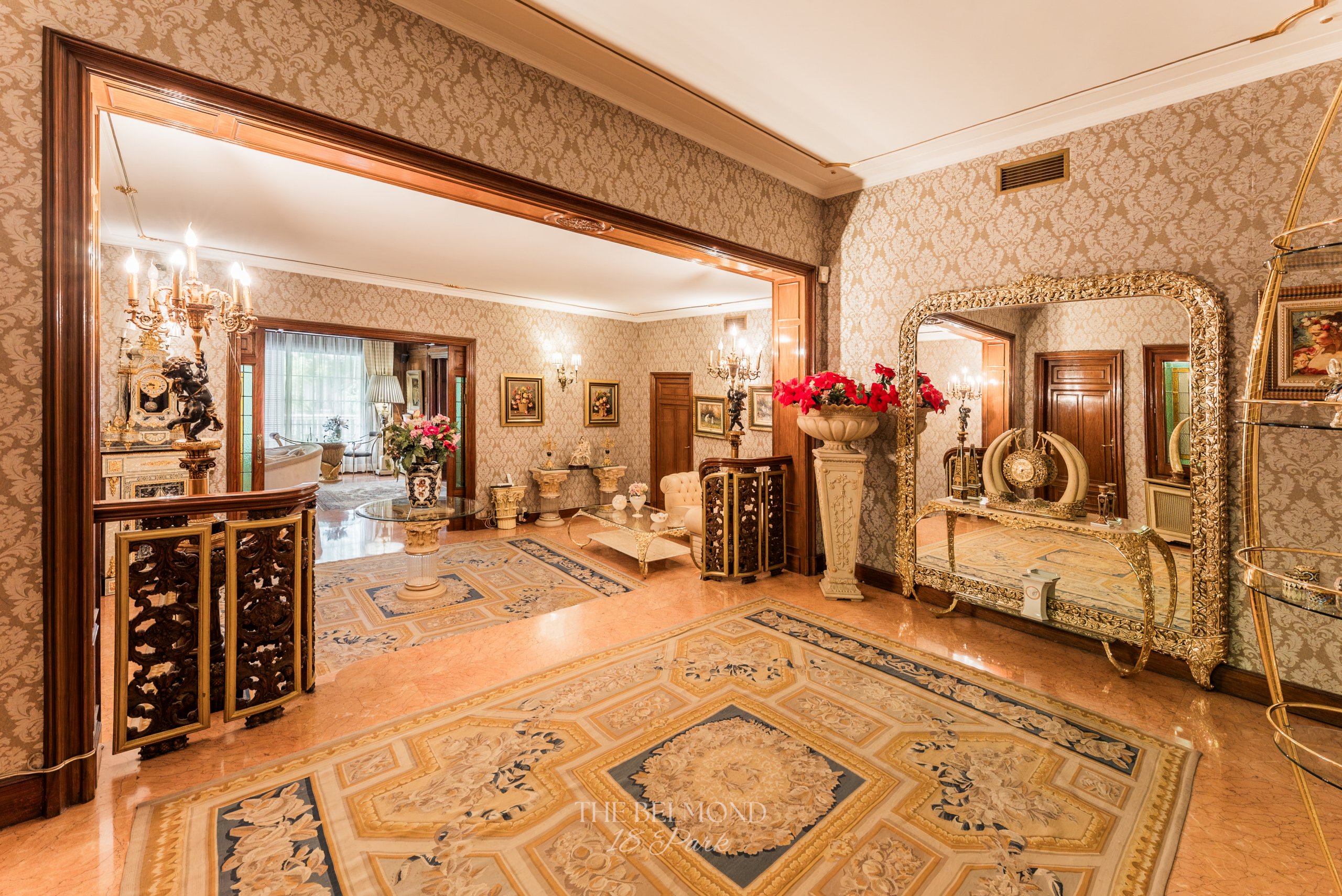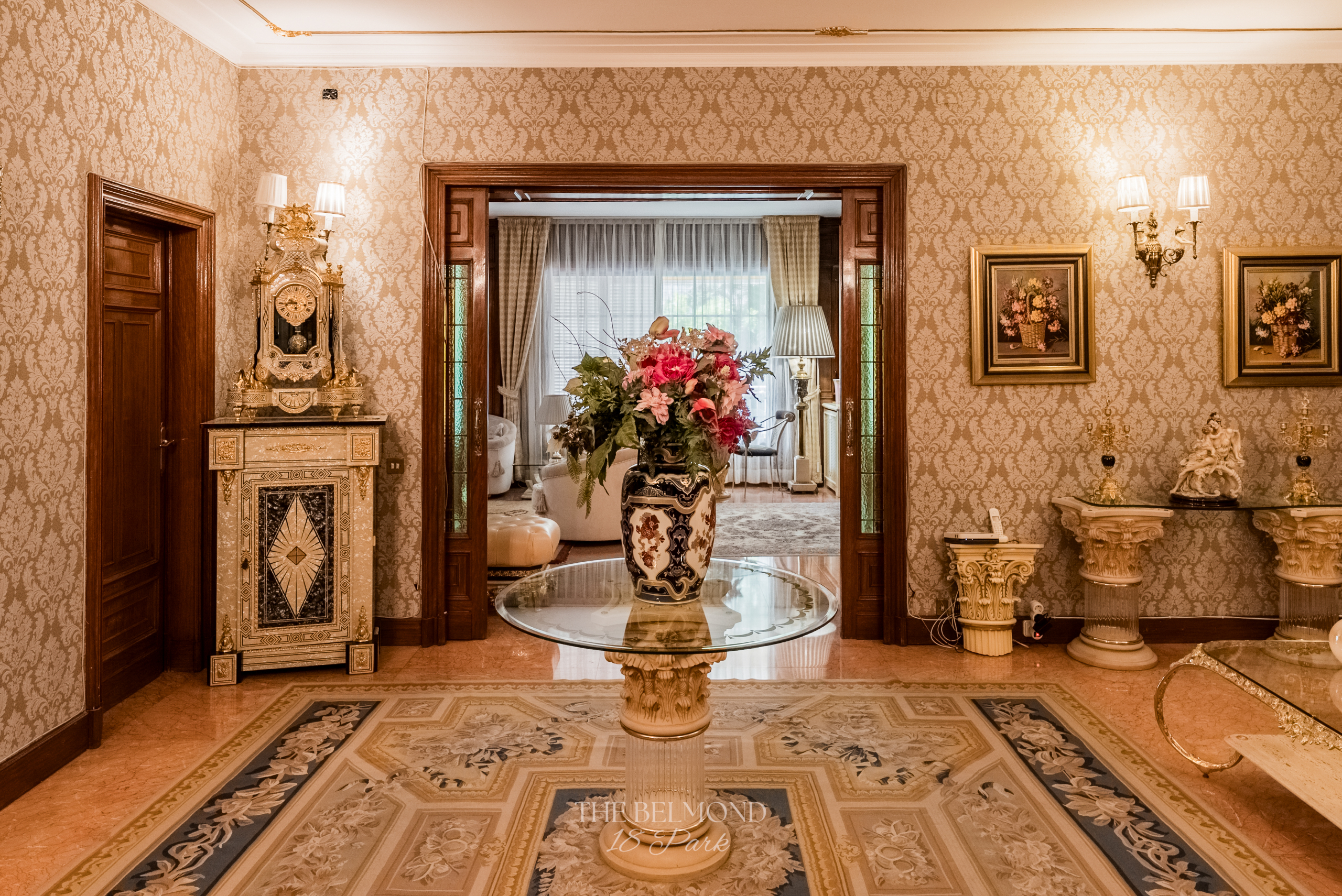 El acceso a la propiedad se realiza a través de un elegante hall que conduce a una majestuosa zona de día, compuesta por un gran salón, comedor y una refinada biblioteca, todos ellos con salida directa a la terraza y con una continuidad visual única hacia el Turó Park, creando una sensación de espacio y luminosidad excepcionales.