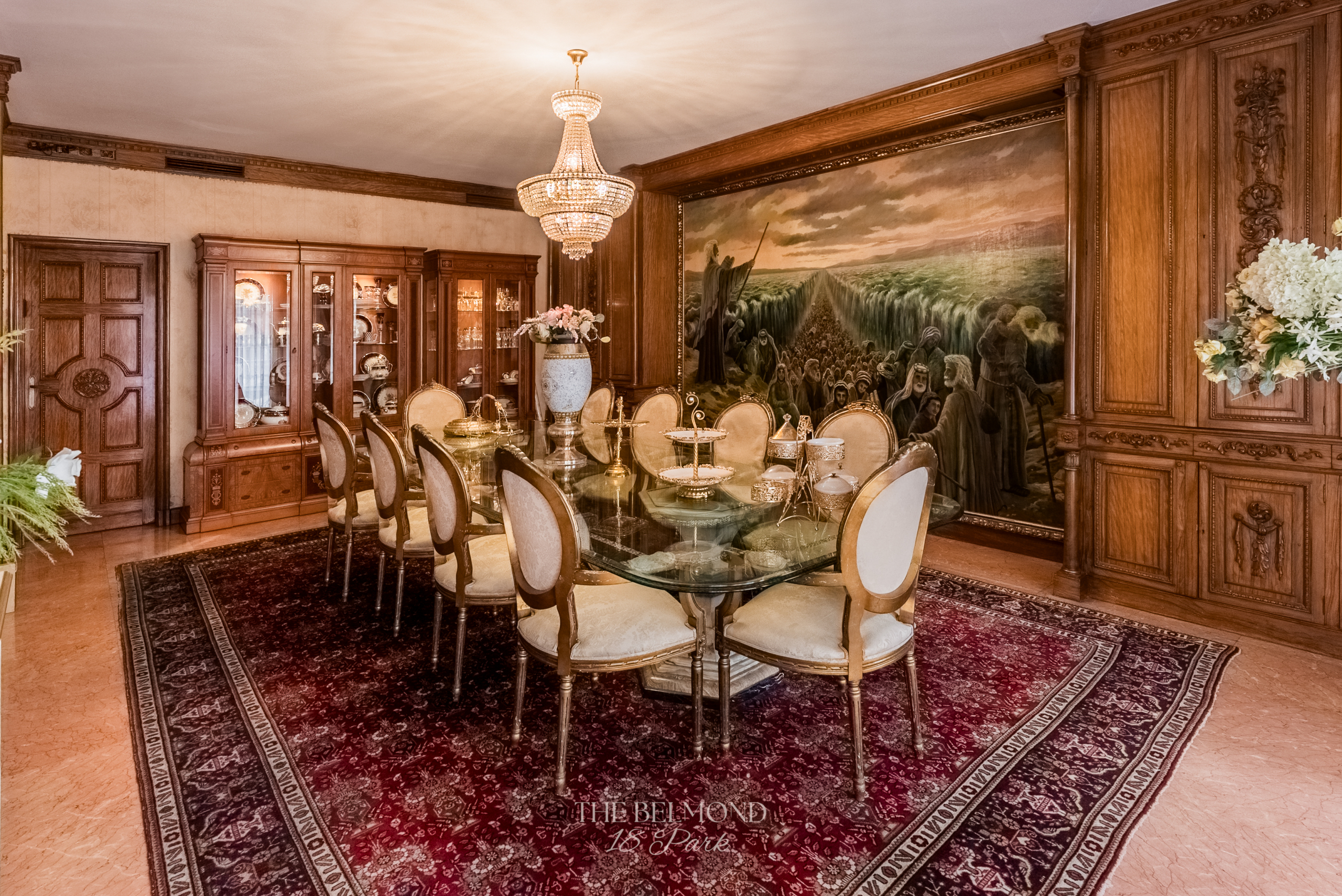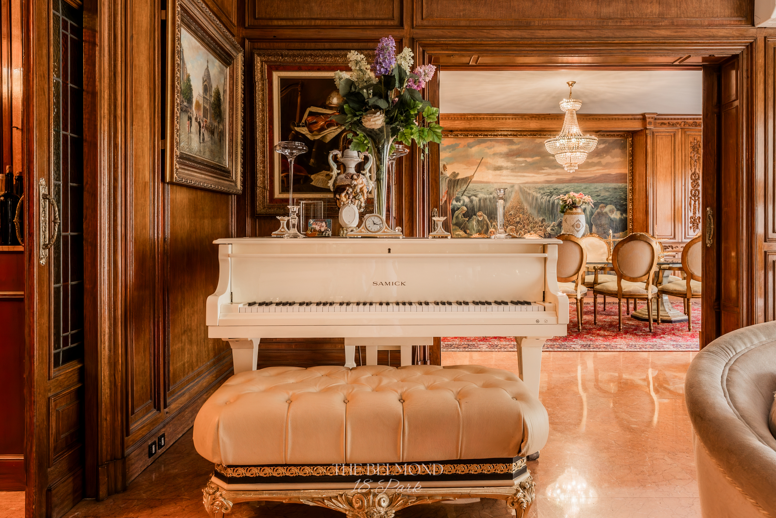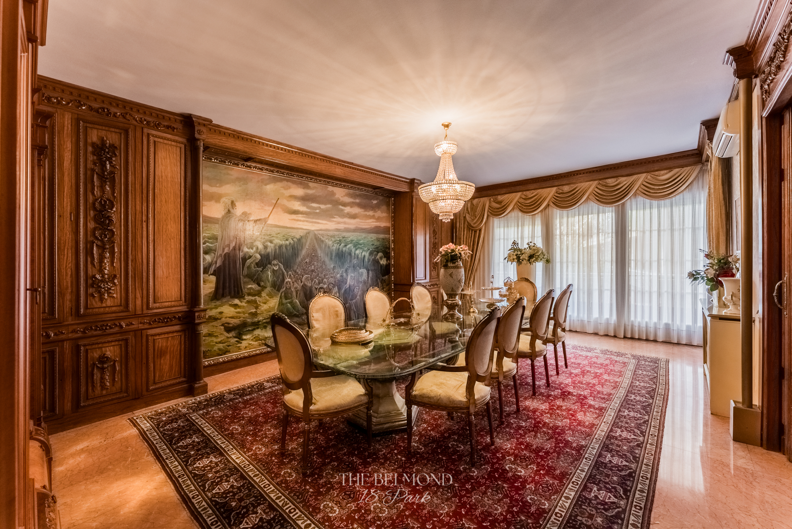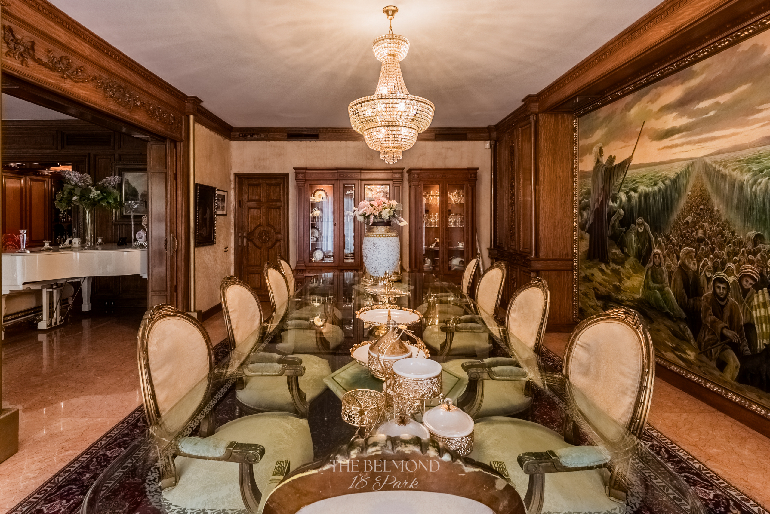 El acceso a la propiedad se realiza a través de un elegante hall que conduce a una majestuosa zona de día, compuesta por un gran salón, comedor y una refinada biblioteca, todos ellos con salida directa a la terraza y con una continuidad visual única hacia el Turó Park, creando una sensación de espacio y luminosidad excepcionales.