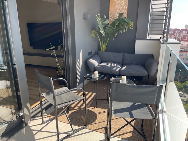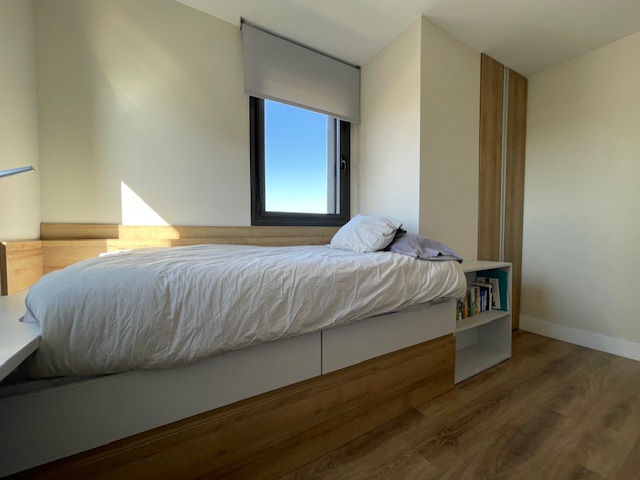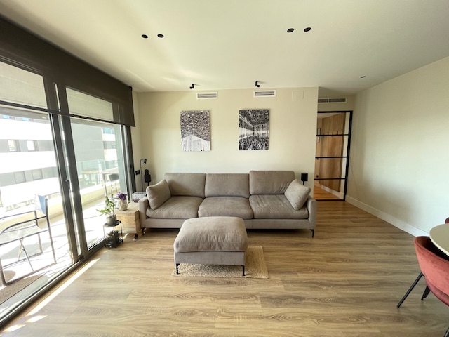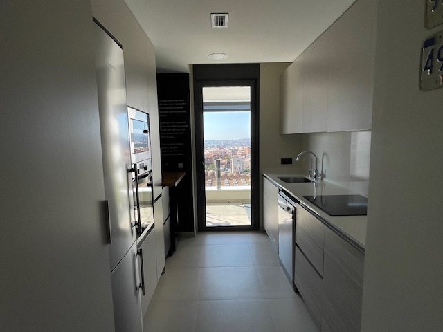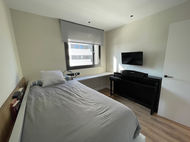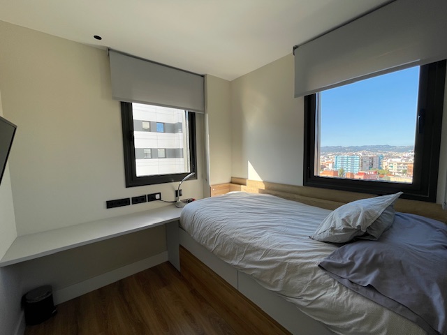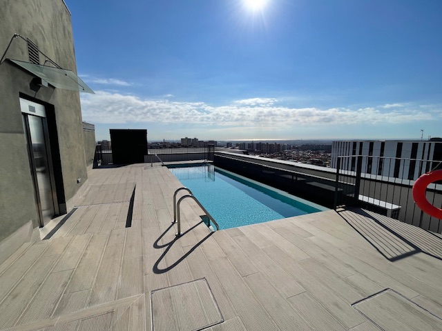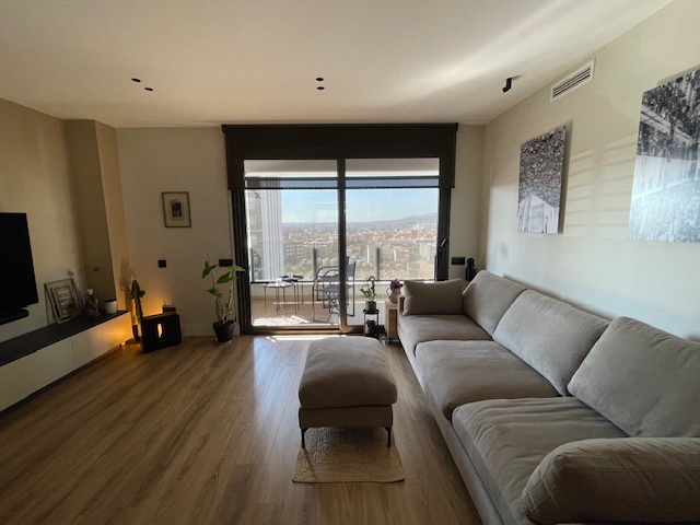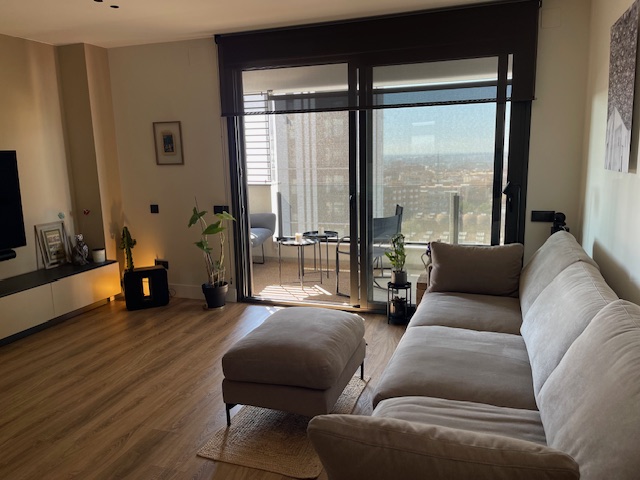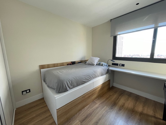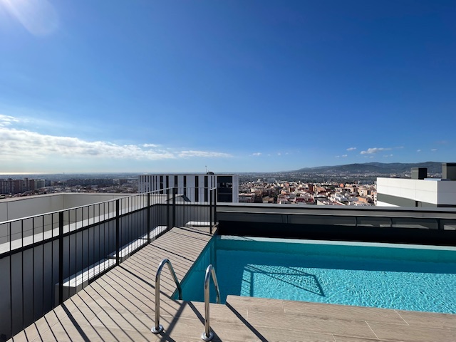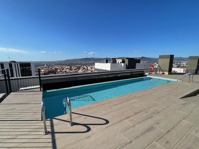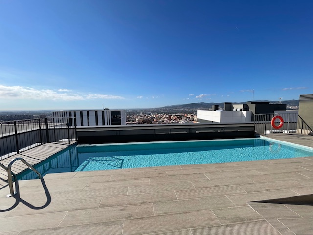 Vivienda exclusiva en planta 9: Suite + 2 dormitorios, 2 baños completos, 2 plazas de parking, trastero, amplia terraza, aerotermia, totalmente exterior, orientación sur-oeste, con 2 piscinas y zona infantil con columpios– Esplugues/Cornellà (Obra nueva 2021)