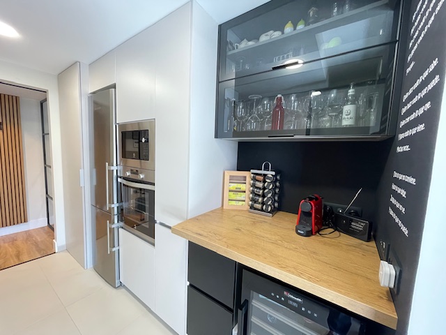 • Cocina ampliada y modernizada, con almacenaje optimizado, distribución eficiente y electrodomésticos de alta gama.