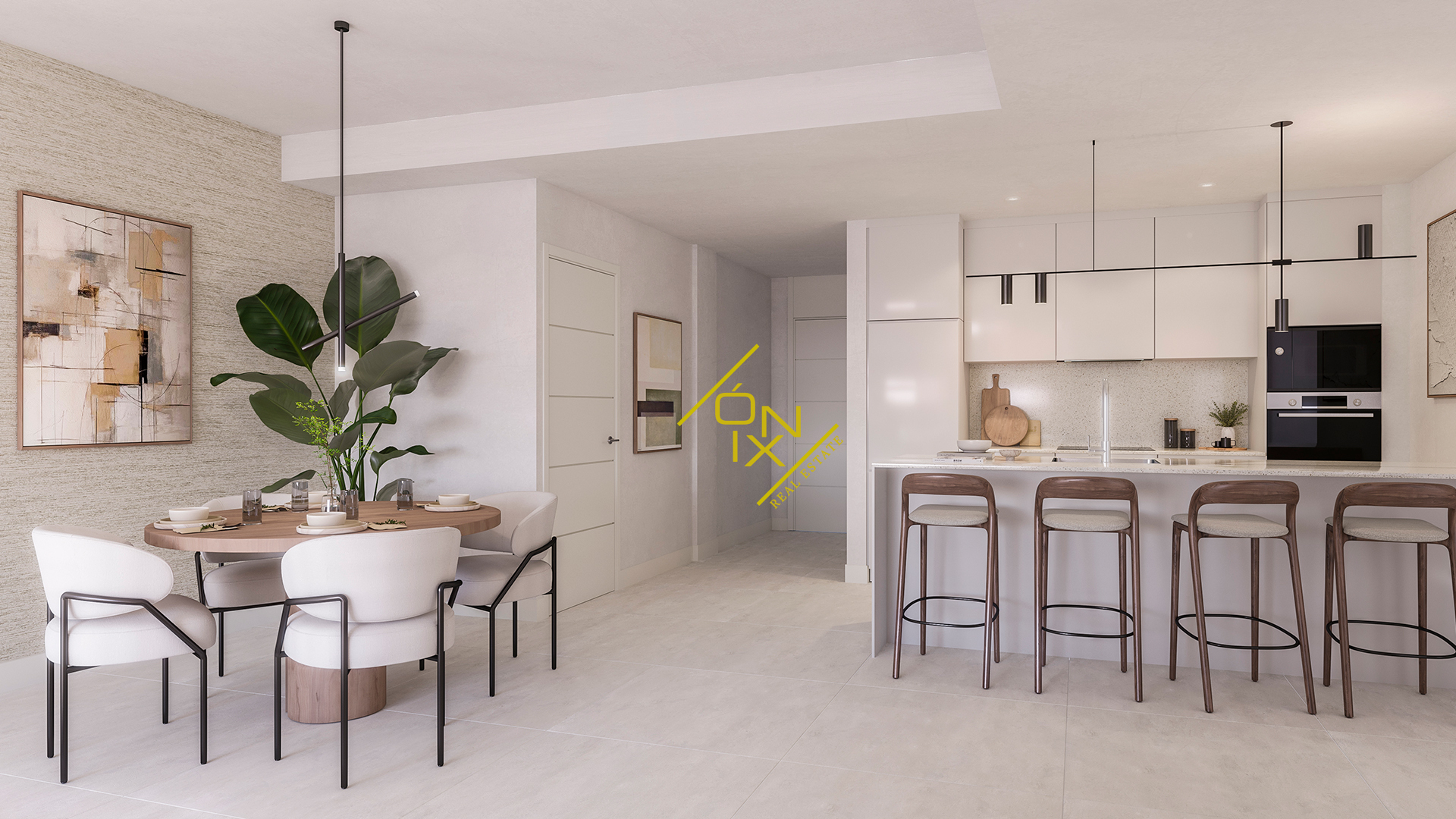 Cada una de las 25 unidades de esta promoción es una perfecta combinación de diseño y funcionalidad. Los interiores han sido pensados para aprovechar al máximo la abundante luz natural que caracteriza el entorno, permitiéndote vivir de primera mano los beneficios del estilo de vida mediterráneo. Las viviendas destacan por su alto nivel de detalle y amplias estancias, todas perfectamente orientadas. Los suelos porcelánicos de gran formato y los grandes ventanales inundan los interiores de luz natural a lo largo de todo el día. Las generosas terrazas y solariums son ideales para disfrutar de agradables veladas al atardecer. La cocina, de concepto abierto, se integra perfectamente con el salón, creando espacios amplios y funcionales para el disfrute diario. Las calidades son excepcionales, con encimeras de cuarzo y electrodomésticos de última tecnología. Los baños, con elegantes revestimientos de gran formato en porcelánico, reflejan la sofisticación y el diseño de cada rincón.