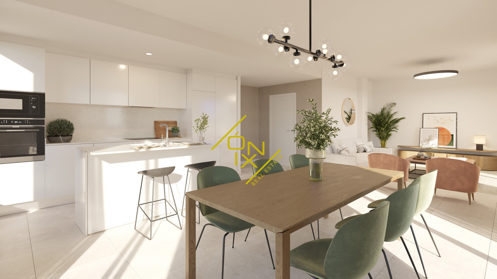 Las viviendas están orientadas al sureste, permitiendo disfrutar de espectaculares vistas y estancias luminosas durante todo el día. Se han utilizado materiales de alta calidad, como suelos porcelánicos de gran formato, amplios ventanales y cocinas abiertas al salón con encimeras de cuarzo y electrodomésticos integrables. Además, los baños destacan por su elegancia y acabados en porcelánico de gran formato.